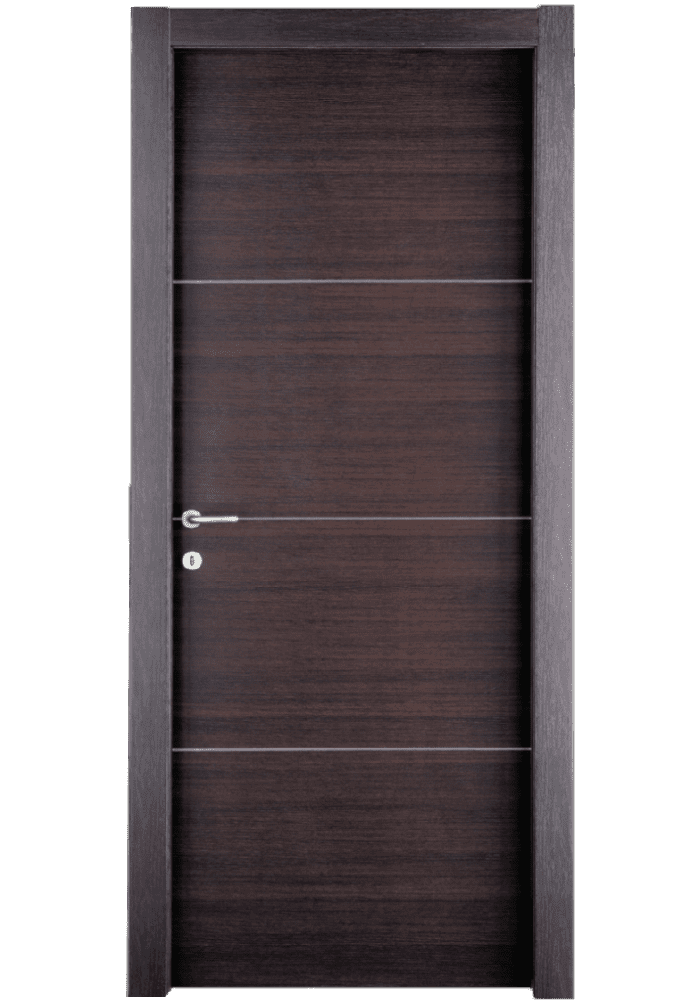 Laminate wenge με 3 οριζόντιες inox γραμμές που χωρίζουν την πόρτα σε 4 ίσα μέρη.