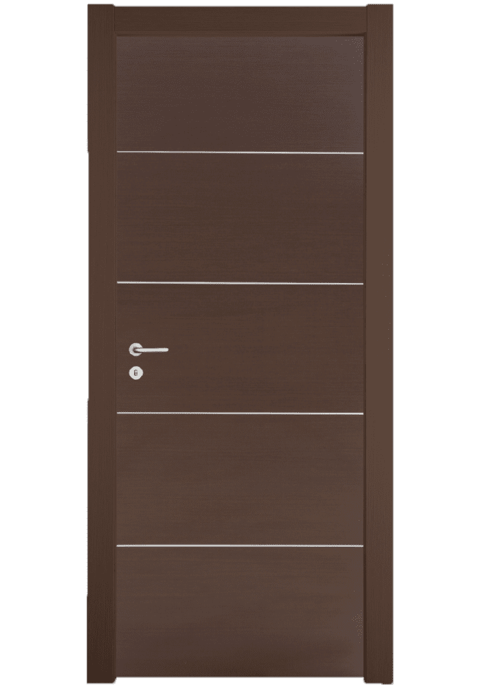 laminate wenge με 4 οριζόντιες inox γραμμές, που χωρίζουν την πόρτα σε 5 ίσα μέρη.